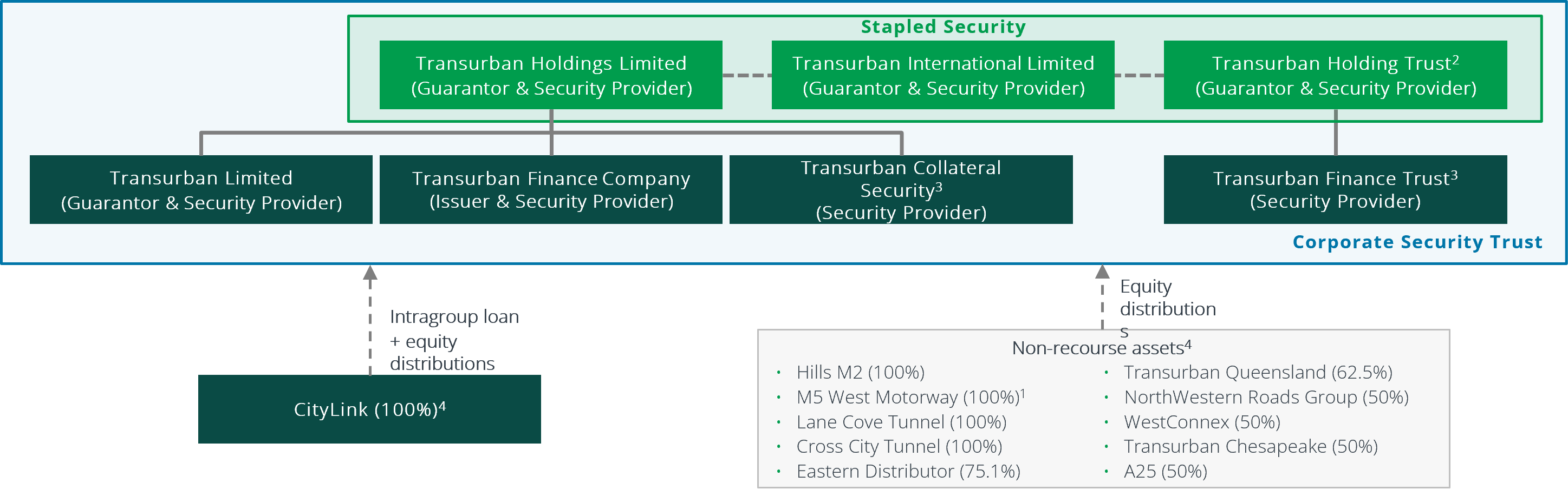 - Corporate debt also benefits from indirect security over CityLink and Transurban Group’s share of distributions generated by its other assets