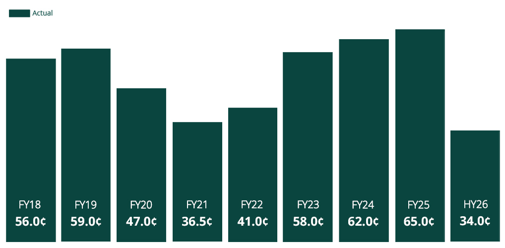| 34.00 | 30 Dec 2025 | 24 Feb 2026 | 18.71 cents per stapled security |