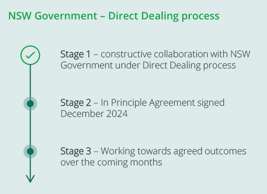 At the end of 2024, Transurban and our partners progressed to Stage 2 of the NSW Government’s Direct Dealing process. We continue to work collaboratively with the Government on a range of options which could positively contribute to toll reform outcomes for customers.